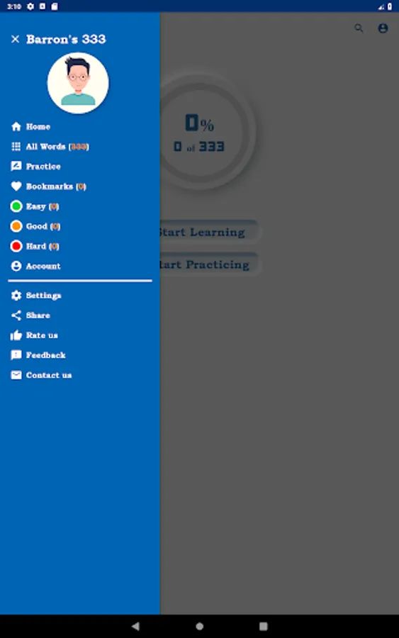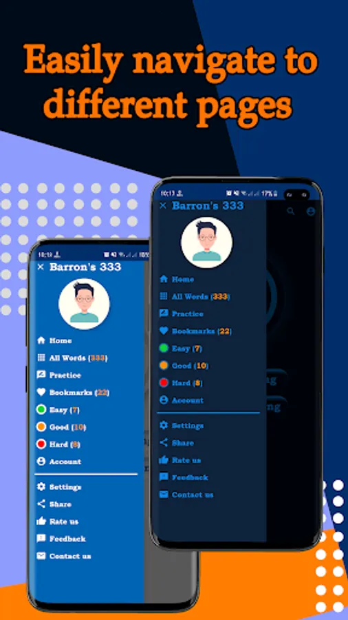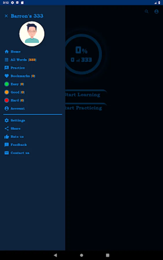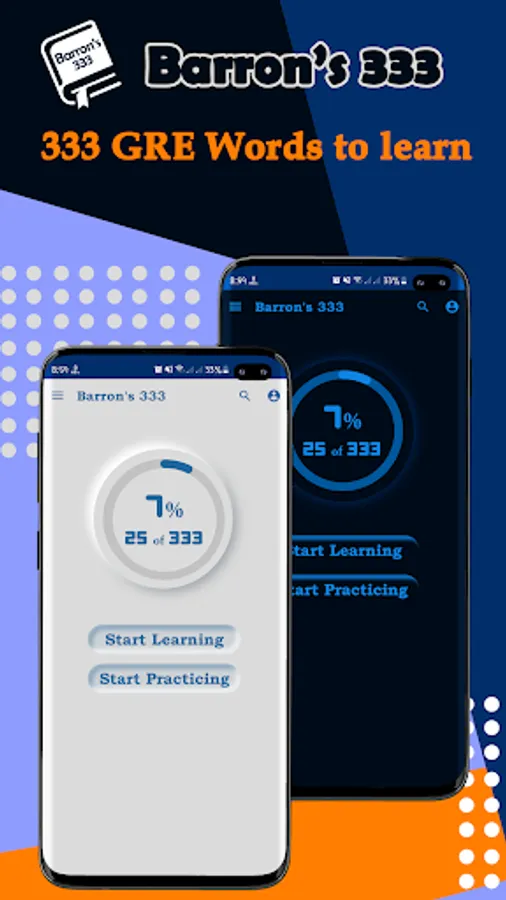 • Barron’s 333 GRE Exam preparation vocabulary app is available in both light and dark modes.