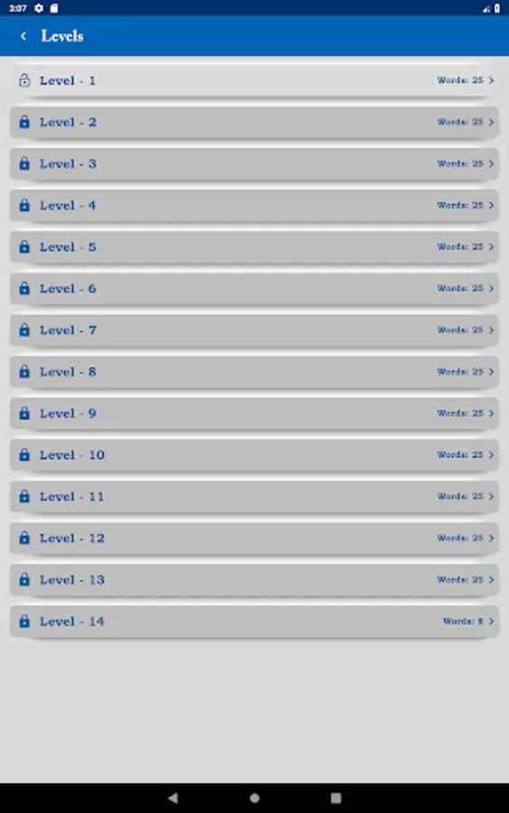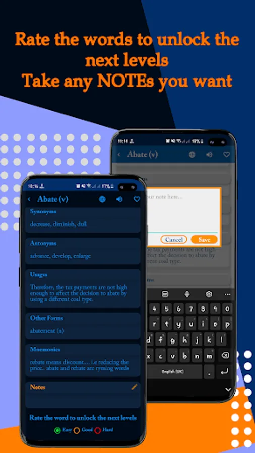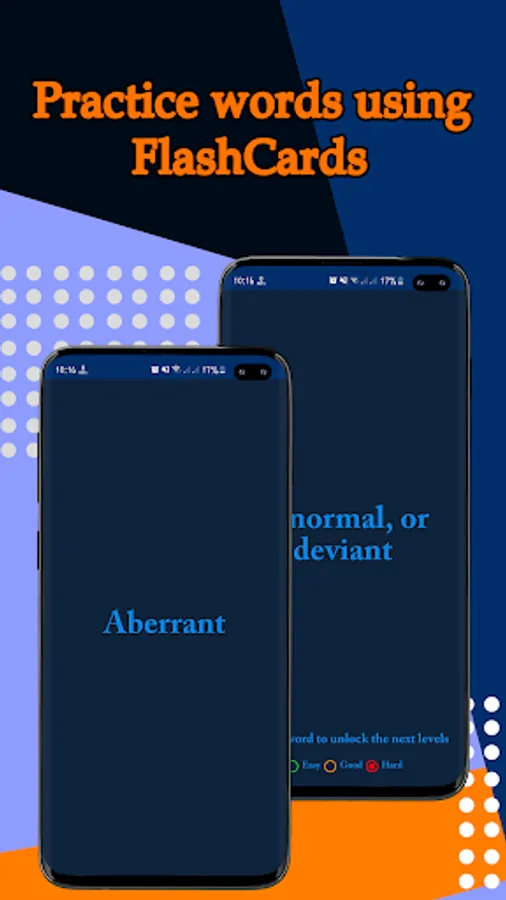 • Rate the words as Easy, Good and Medium to unlock the next levels.