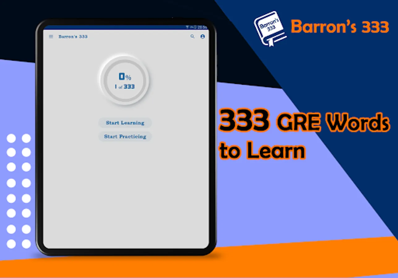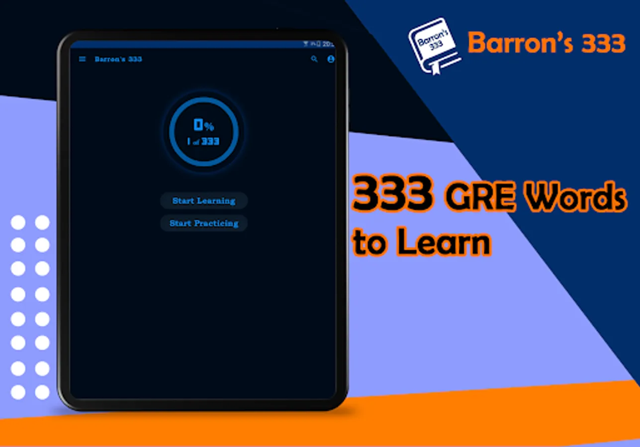 Barron's 333 High-frequency GRE vocabulary builder app can help you improve your GRE exam score. It includes GRE vocabulary flashcards with definitions, synonyms, antonyms, alternative forms, mnemonics, and examples, as well as practice, a high frequency word list, and a favorite word list.