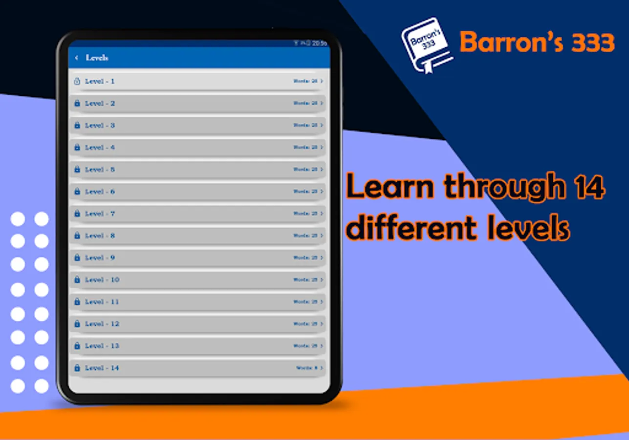 • Barron's 333 High-frequency GRE vocabulary builder app arranged in 14 different levels for GRE words