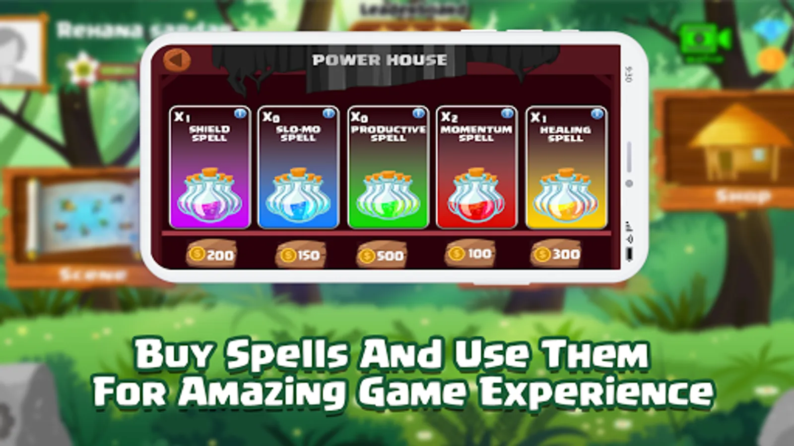 *Use Right spell at the right time to improve Your gameplay, Score and long time gameplay.