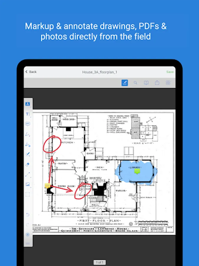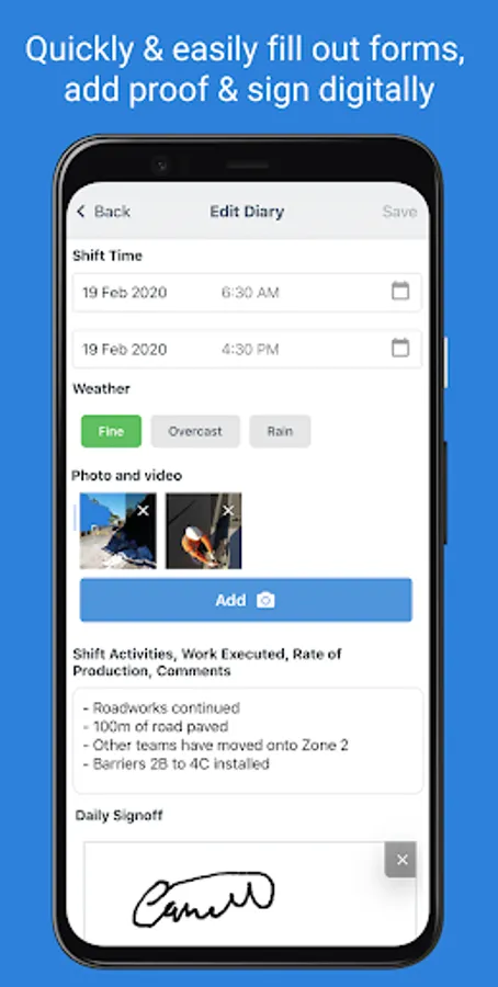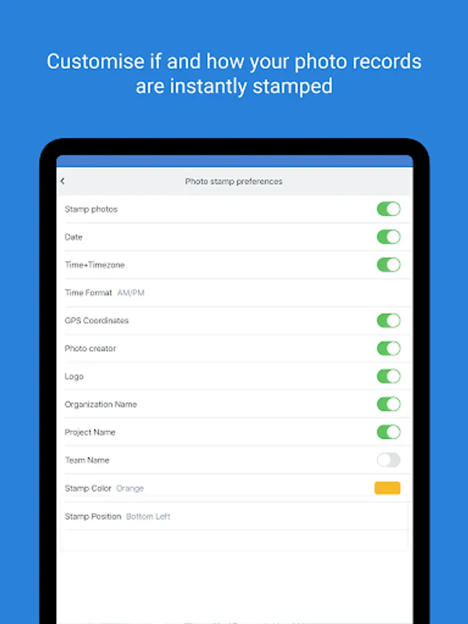 - Job site photo collection and recording: Take photos and videos directly in the app which are instantly uploaded to your cloud-based library and organised by simple tags for easy traceability