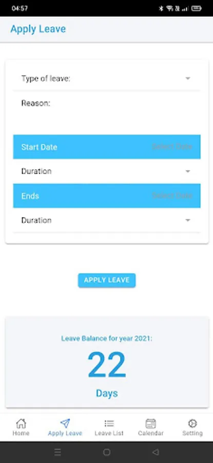 Application that assists users in requesting leave for Dyna Consurv employees.