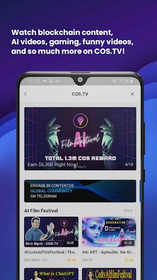 COS.TV has millions of creative and fun videos on blockchain technology, AI, gaming and so much more!