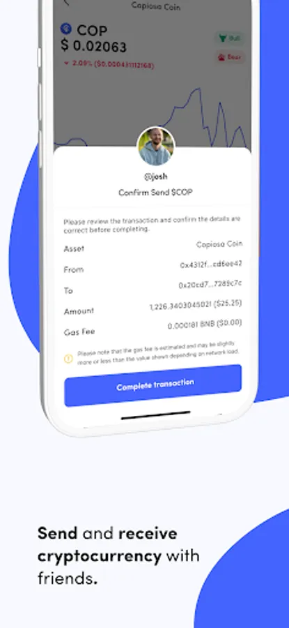 Social - Send Crypto socially to another Copiosa App user using their Copiosa Alias!