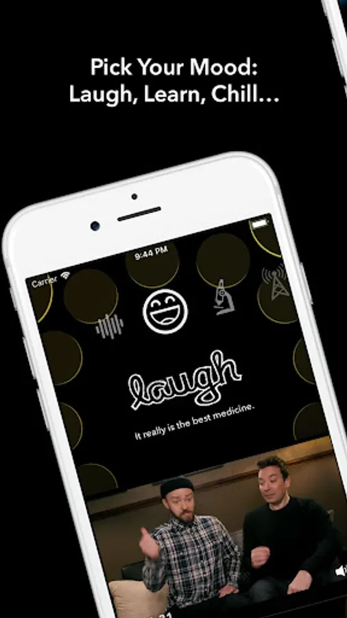 From comedy, to music, to news, Rheo organizes videos by your mood: Laugh, Learn, Chill, Taste, Move, Inform, Spark, etc.