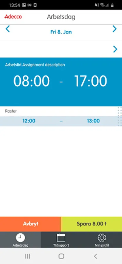 Adecco Time is a time reporting application for use by Adecco's employees.
