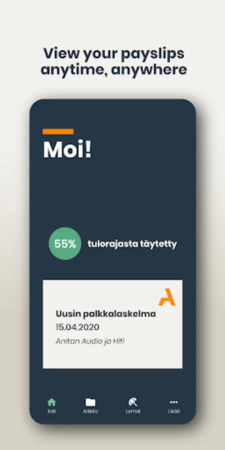 eLiksa is a mobile app for Aditro Verkkopalkka. With the modern and easy-to use eLiksa, you can view your payslips directly from your mobile device. The app is designed so that all relevant payslip data is easily readable from your screen.