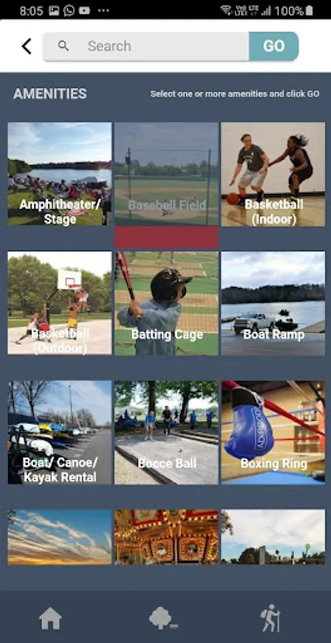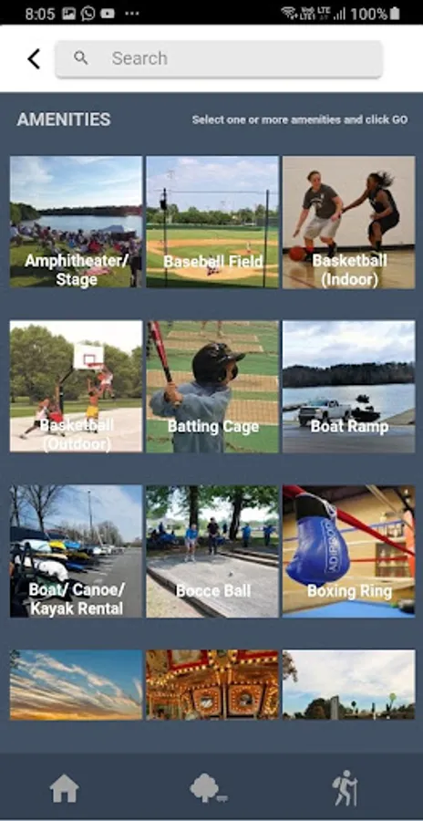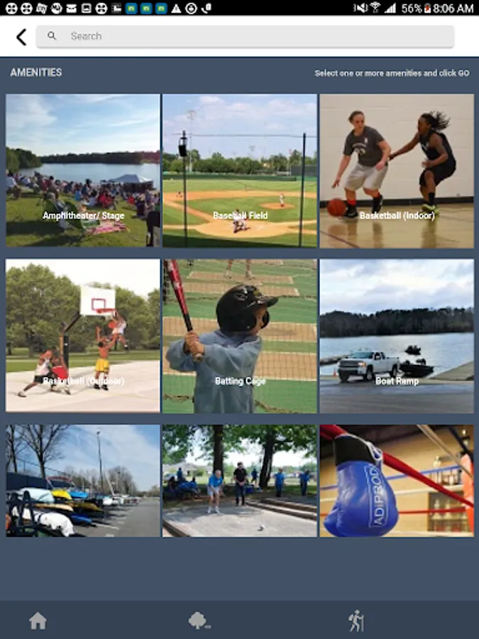 - Search for parks by types of specific amenities, including playgrounds, athletic fields, courts, and dozens of other recreational activities.