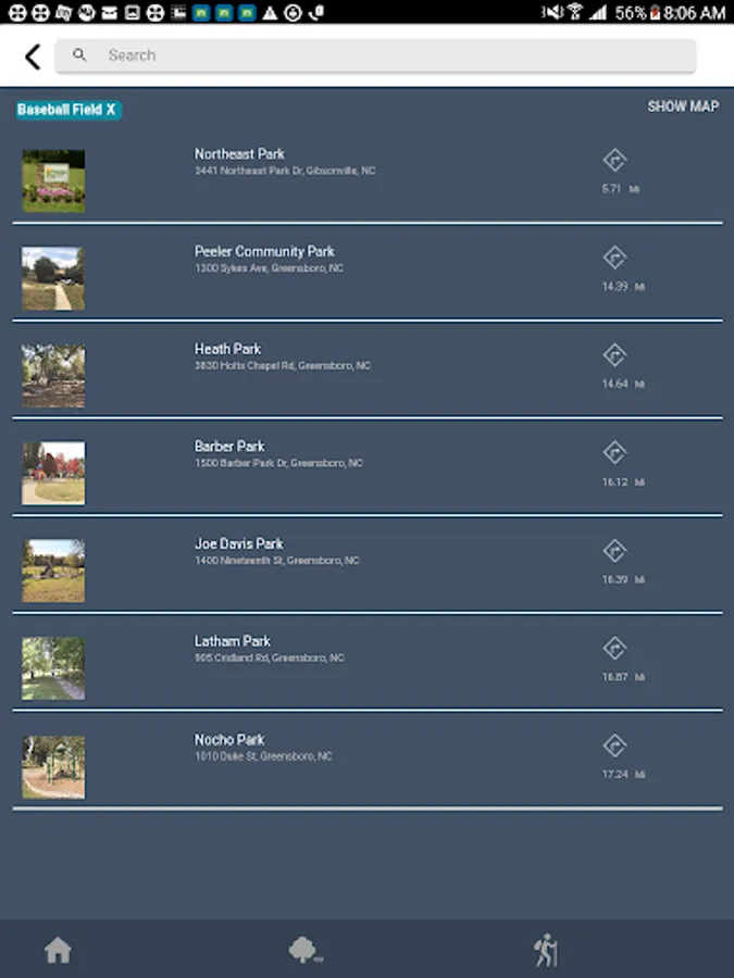 - Search for parks and trails nearest your current location.