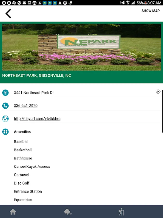 - View basic information related to parks and trails, including phone numbers and links to the official websites.