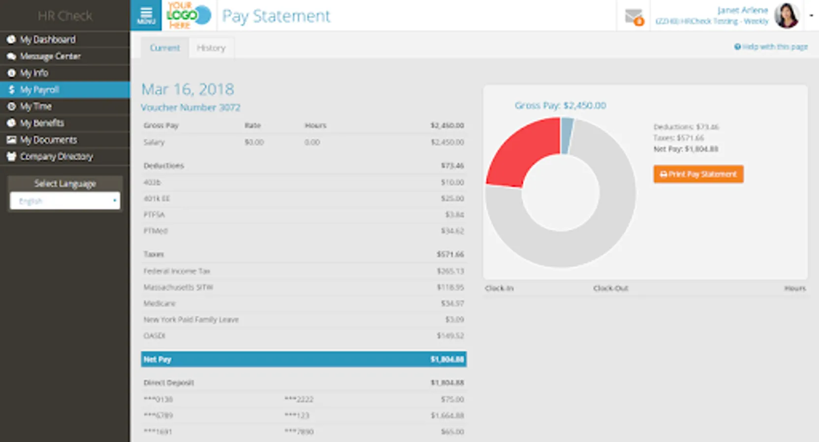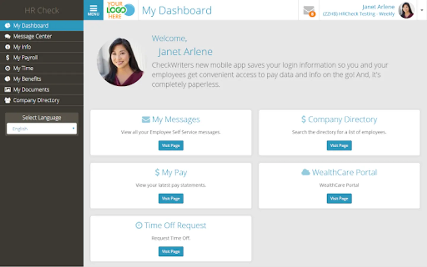 Provide your employees with the ability to view and print their checks when they need to. Let them view payroll or benefit services and submit requests for administrative approval, and send them documents like company handbooks and tax forms.