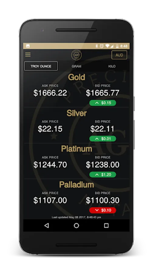 AGD Precious Metals application brings you up to date gold, silver, platinum and palladium prices direct to your IOS or Android device.