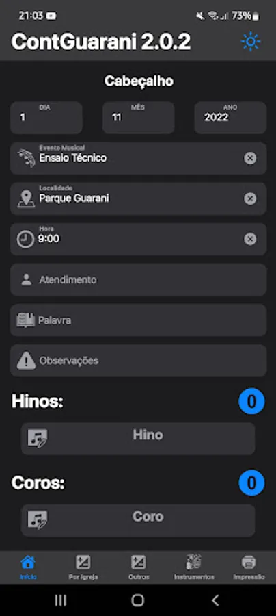 Application for counting only in Music Events held by Setor Leste, SP, CCB.