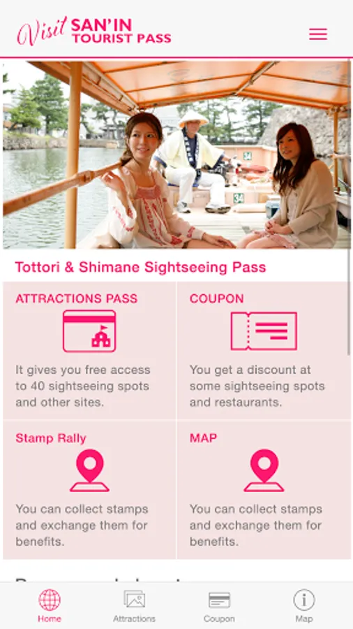 The Visit San'in Tourist Pass is a tour pass that can be used at tourist facilities in the San'in region.