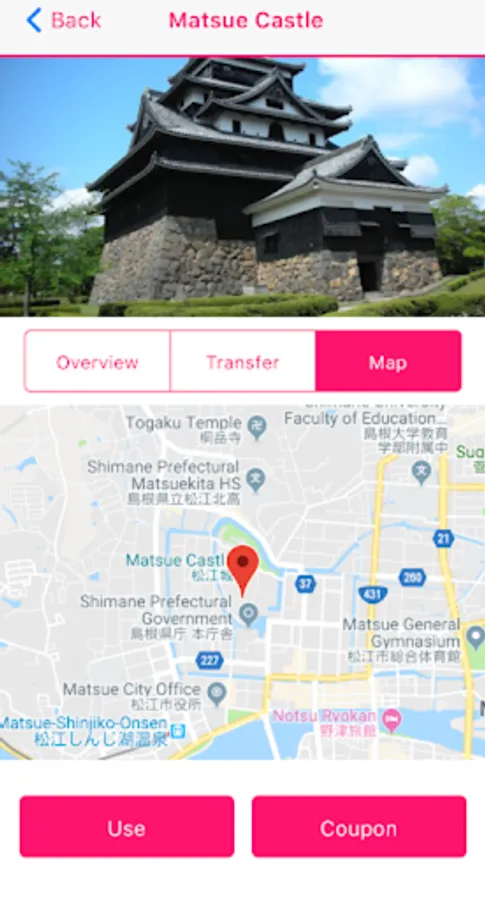 You can search for nearby spots and facilities where coupons can be used on the map.