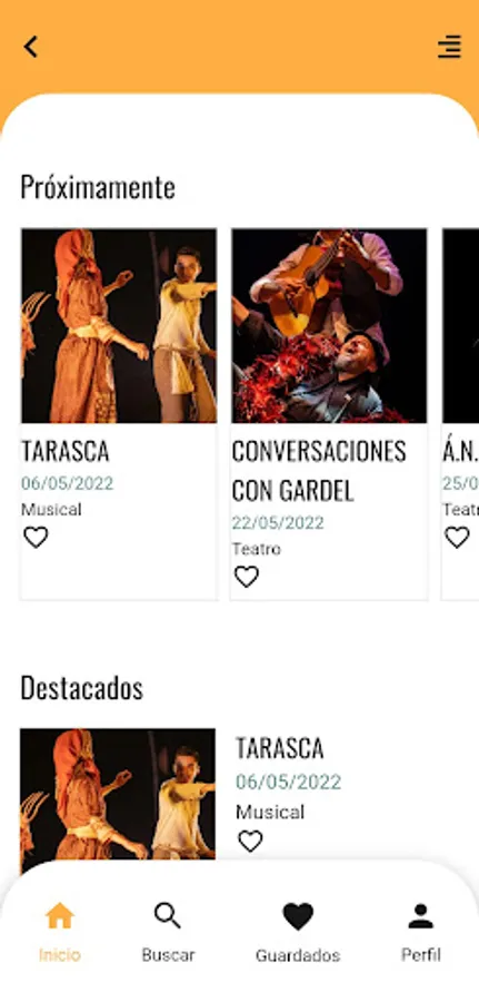Agenda of events and activities of the Scenic Laboratory, among which are shows, productions, musical study courses and other cultural activities that you can consult and book from the app.