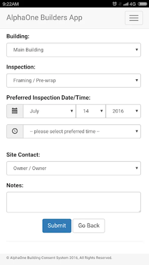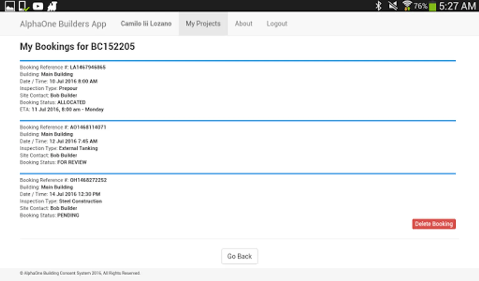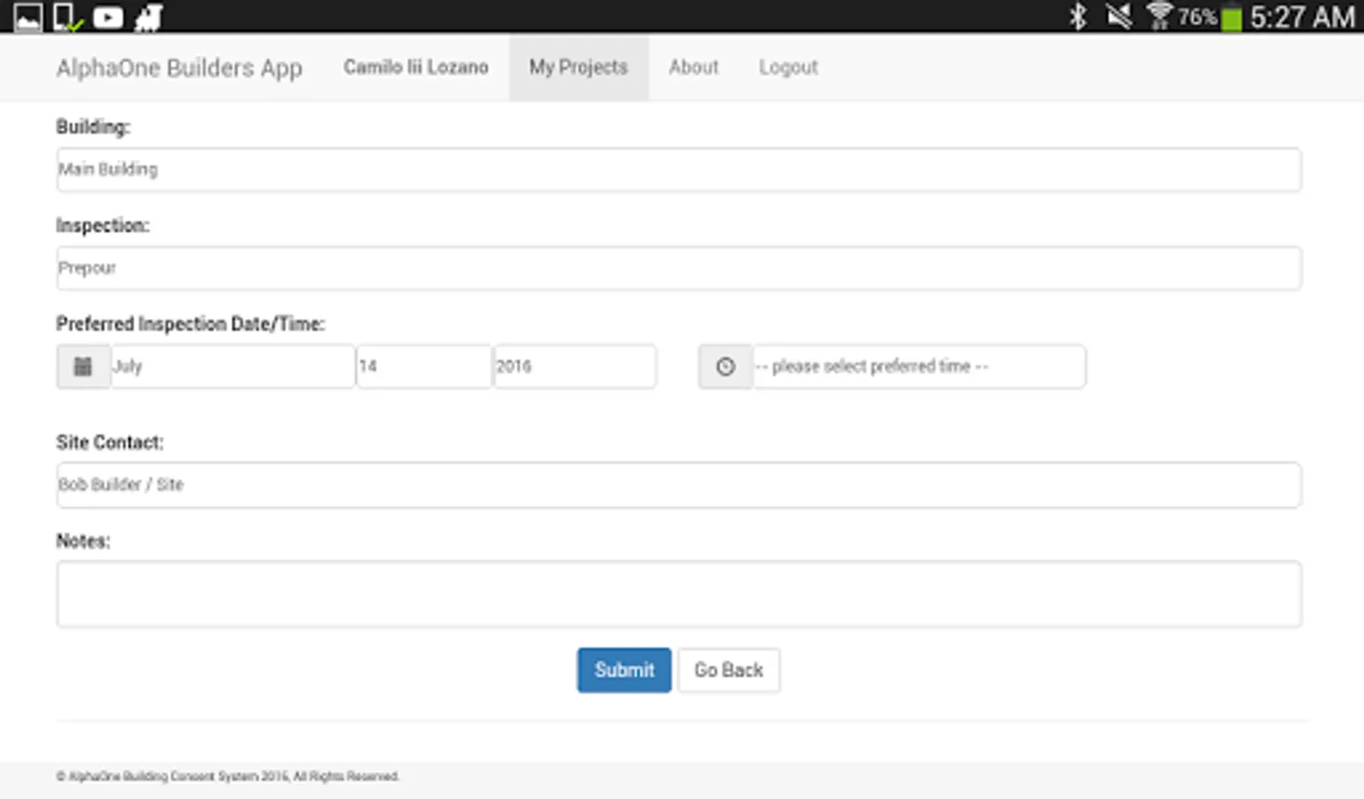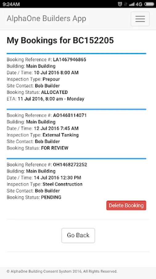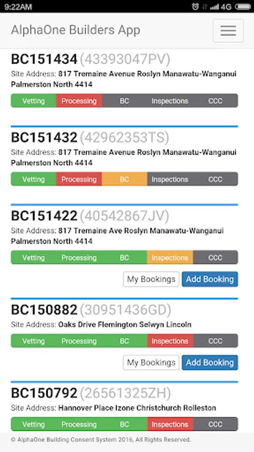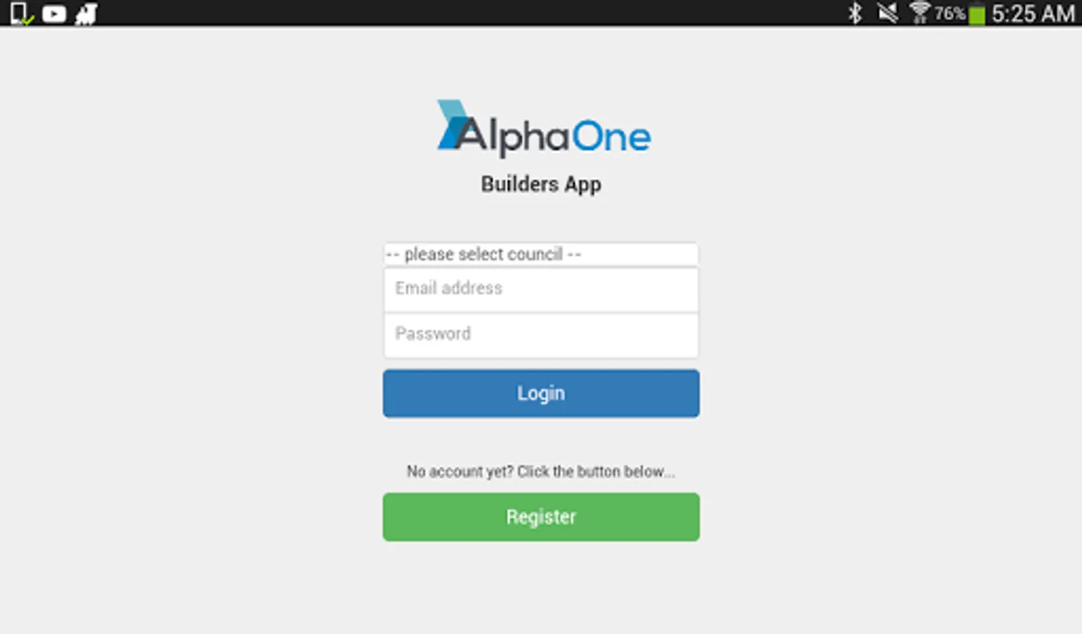 AlphaOne Builders App is an app for booking inspections after your Building Consent has been granted. You can book inspections, view your bookings and also monitor the progress of your lodged applications in your AlphaOne customer portal.