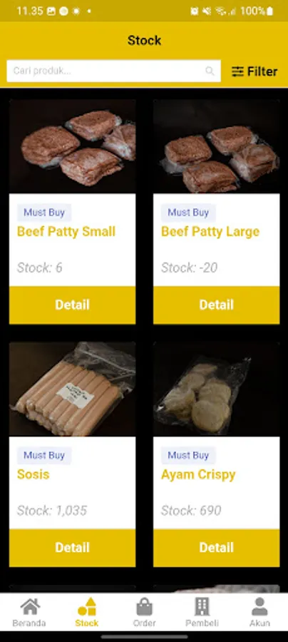 Bangor burger raw material sales application. The raw materials sold in this application are directly integrated with the BangorBuyer application which is used by partners in purchasing raw materials