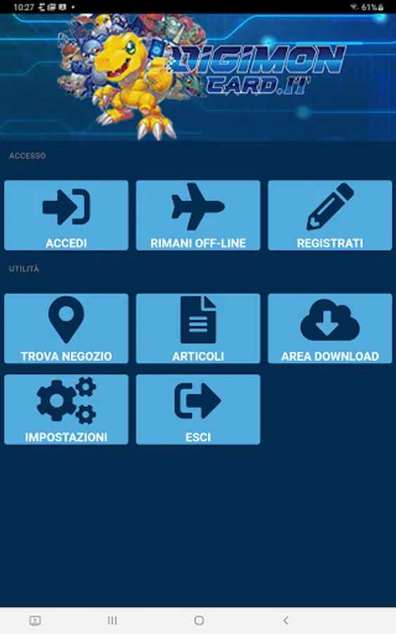 Gametrade Distribuzione is the Italian distributor of the Digimon Card Game. Digimoncard.it is the reference site for the Digimon Card Game for Italy. The app allows the use of various functions useful to the Italian Digimon Card Game community.