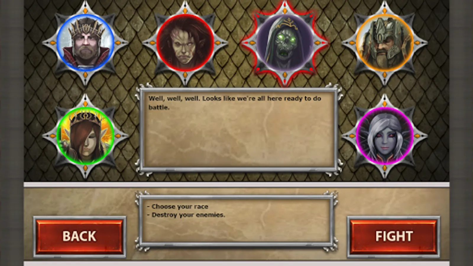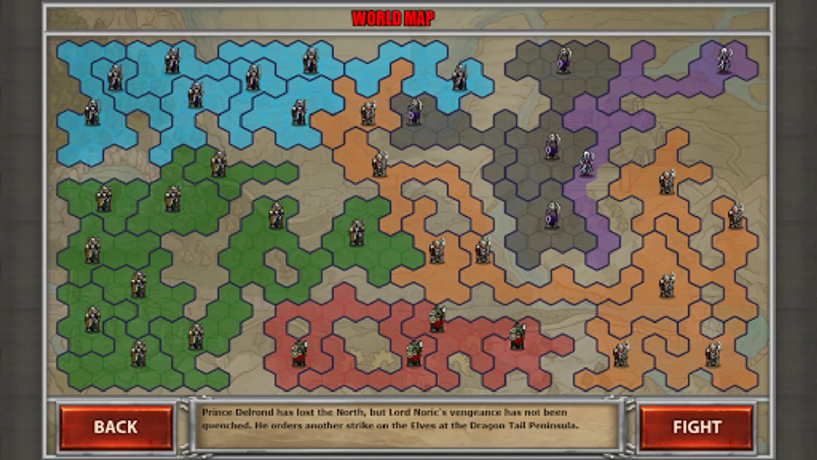 Fantasy Wars is a turn-based strategy game where six fantasy races: Humans, Orcs, Elves, Undead, Dwarves, and Drow vie for supremacy in a small crowded world.