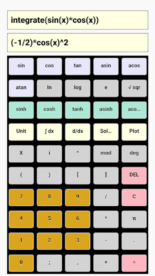 2. Trigonometry: sin, cos, tan, asin, acos, atan (rad, deg)