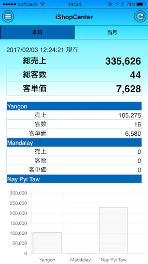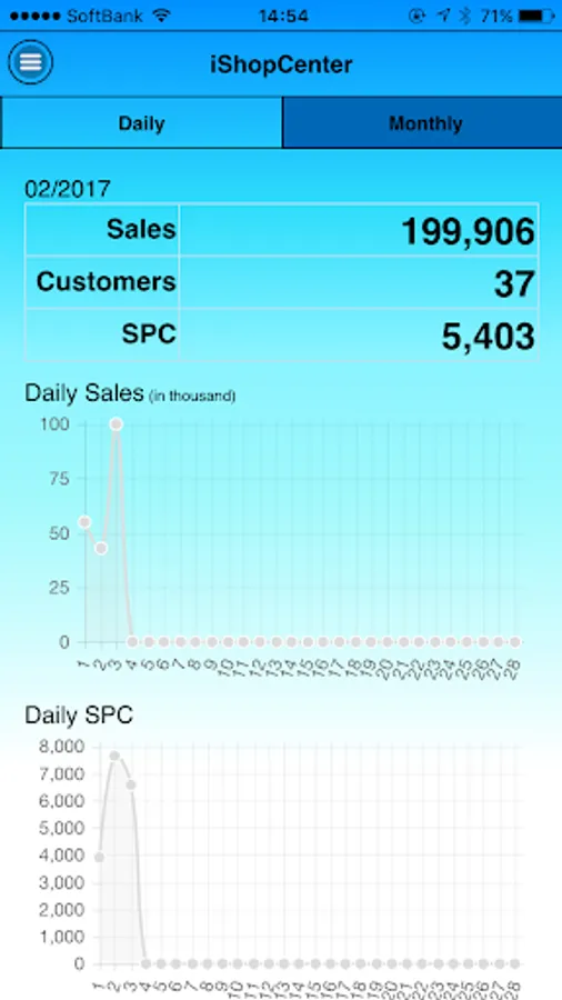 - For each month of the day, you can see the sales of each store, the number of customers, the average spending per customer.