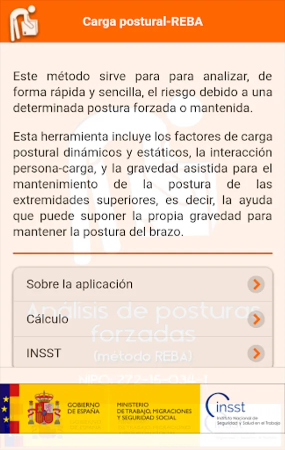This tool includes factors dynamic and static postural load, the person-filler interaction, and assisted gravity for maintaining the position of the upper extremities, ie aid that can make gravity itself to maintain the position of the arm .