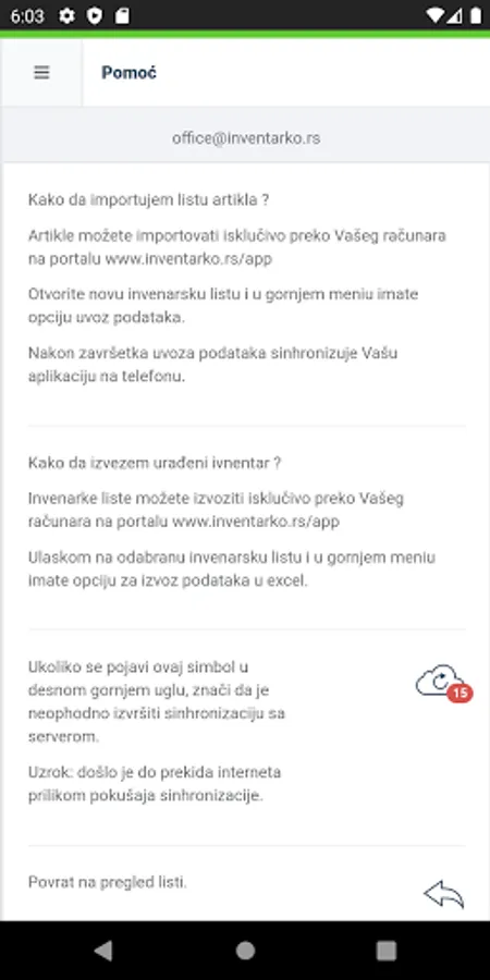 The Invenarko application automatically sends data to the Server as soon as the device receives Internet. If you have an internet database on the portal, it will be updated with each entry.