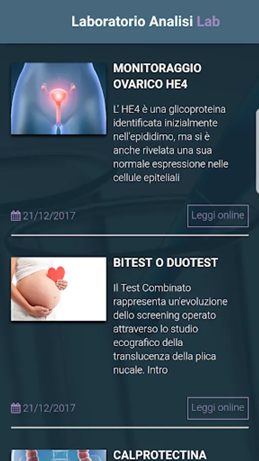 The LAB Clinical Analysis Laboratory App is a tool for online consultation of your blood chemistry reports, carried out in our Laboratory. The App and the service are free for the customers of the center.