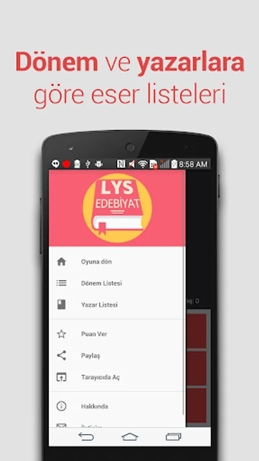 LYS Through Literature Quiz will no longer have to spend days to memorize all the writers and their works. Question - the answer will observe your success on playing well over 2500 different works by the board, you will improve your working efficiency as well as lessons in your spare time.
