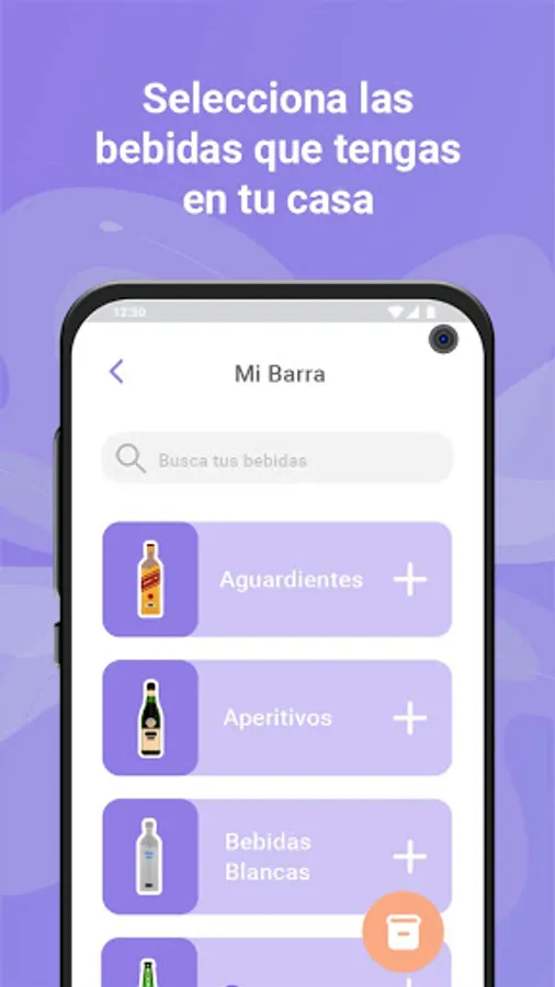 In this tab you can mark the ingredients that you have at your fingertips, in your own cabinet, to obtain a list of the drinks that you can prepare with them. The Bar has a great variety of drinks and ingredients.