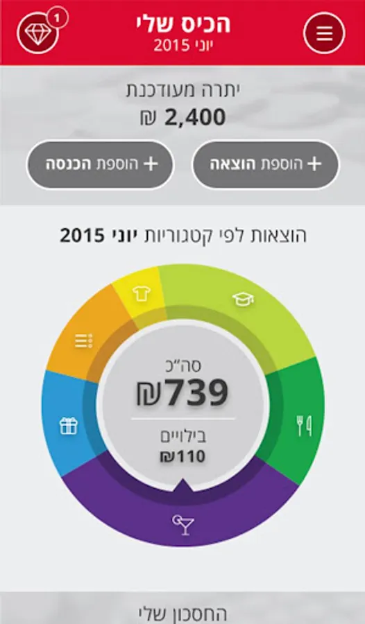 · כלי ניהול פיננסי לרישום ומעקב אחר ההוצאות וההכנסות החודשיות.