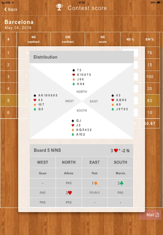Also ideal for home bridge. Play a number of games and let the program calculate a total score. If you play with prepared games for which the frequency state is known, you can enter the percentage scored per game.