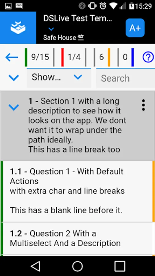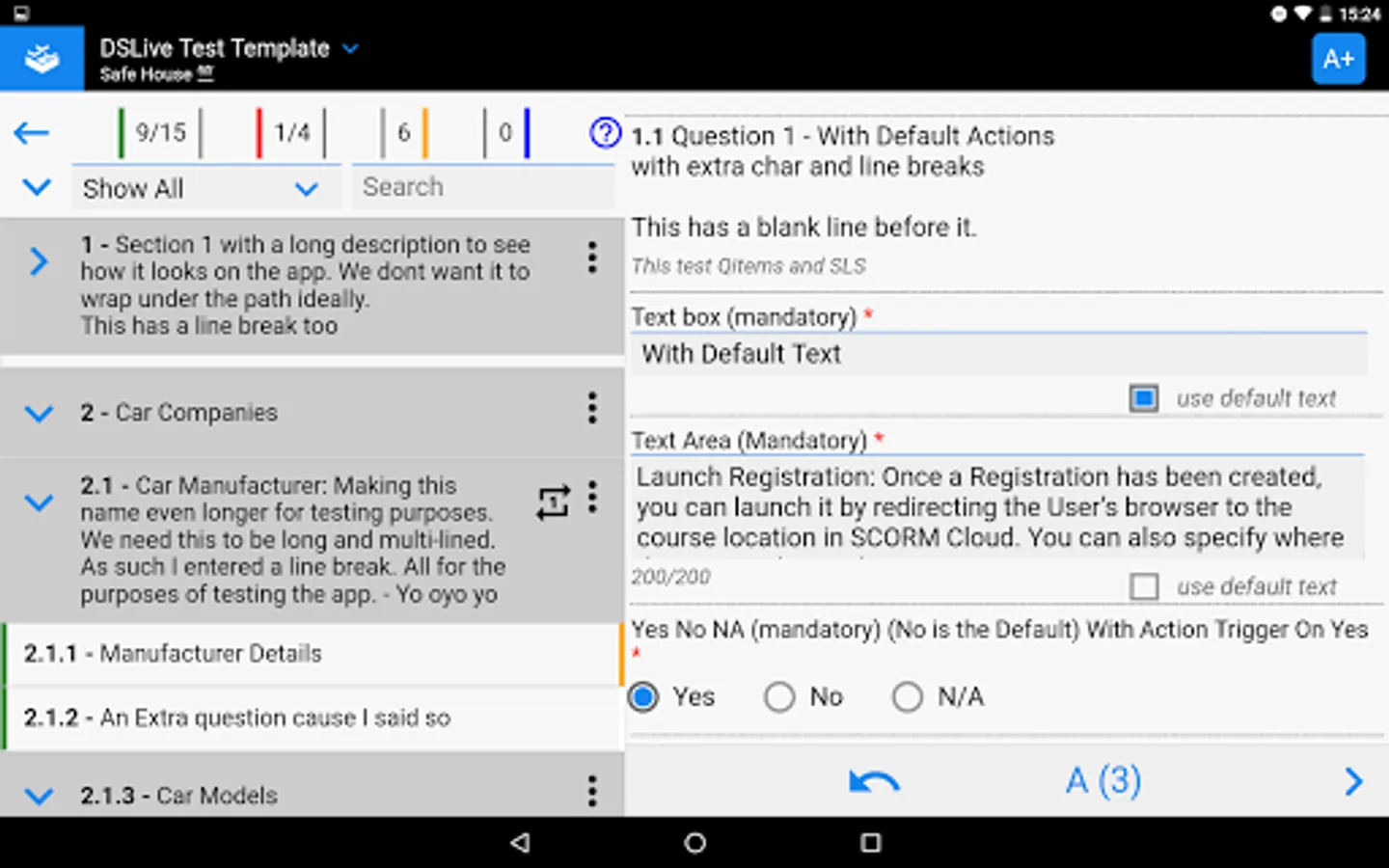 (Yes/No/NA, Text boxes, Drop Down Lists, Multiple Select Options, Time Stamps, Dates, etc)