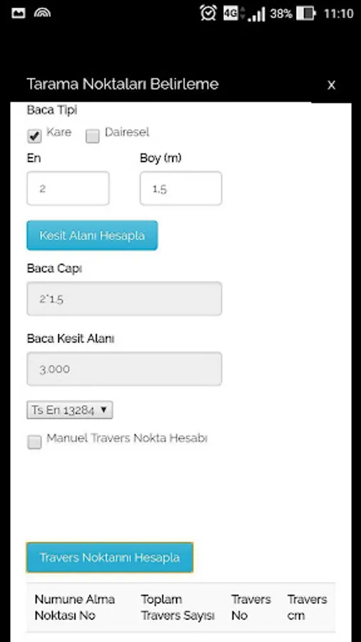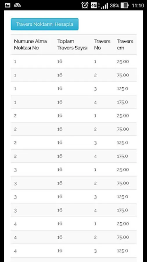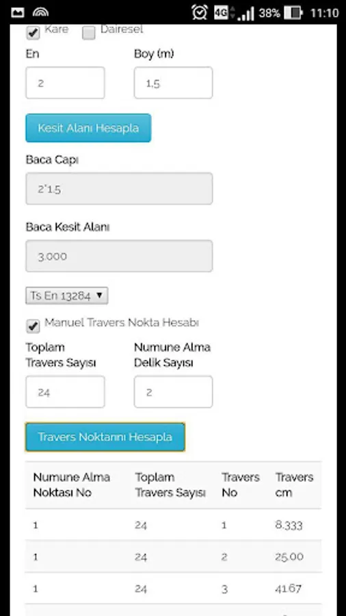 Also according to the number of sampling points and total Traverse mp renders the user input values must traverse point cm.