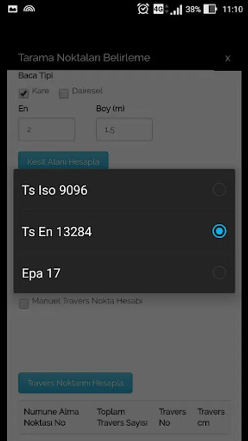 Determination of Traverse measurement point in flue gas emission sources;