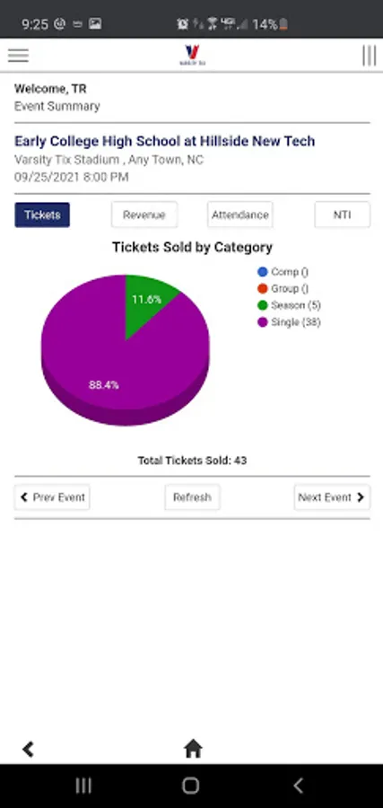 VT Reports provides a simple way to view a variety of real-time reports. Simply login in with your Varsity Tix credentials to access daily sales, event summaries, ticket usage reports and more. The easy to view graphs and charts show you instantly how an event is performing.