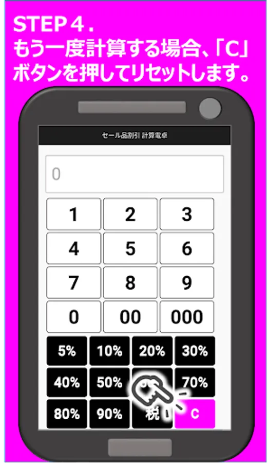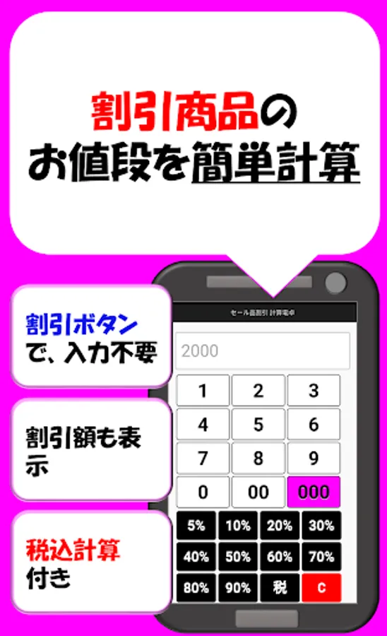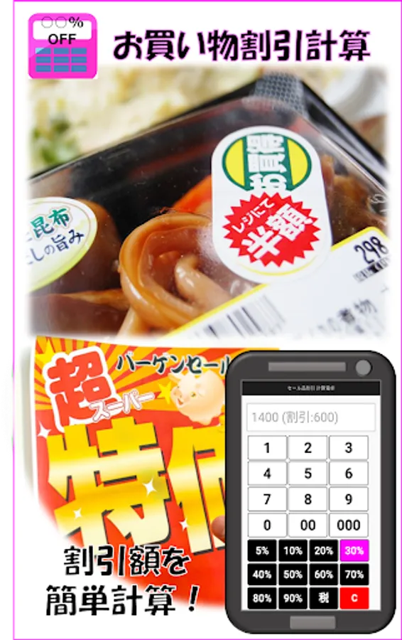 ・割引後の値段をとにかく簡単に(少ない操作で)計算できます。
