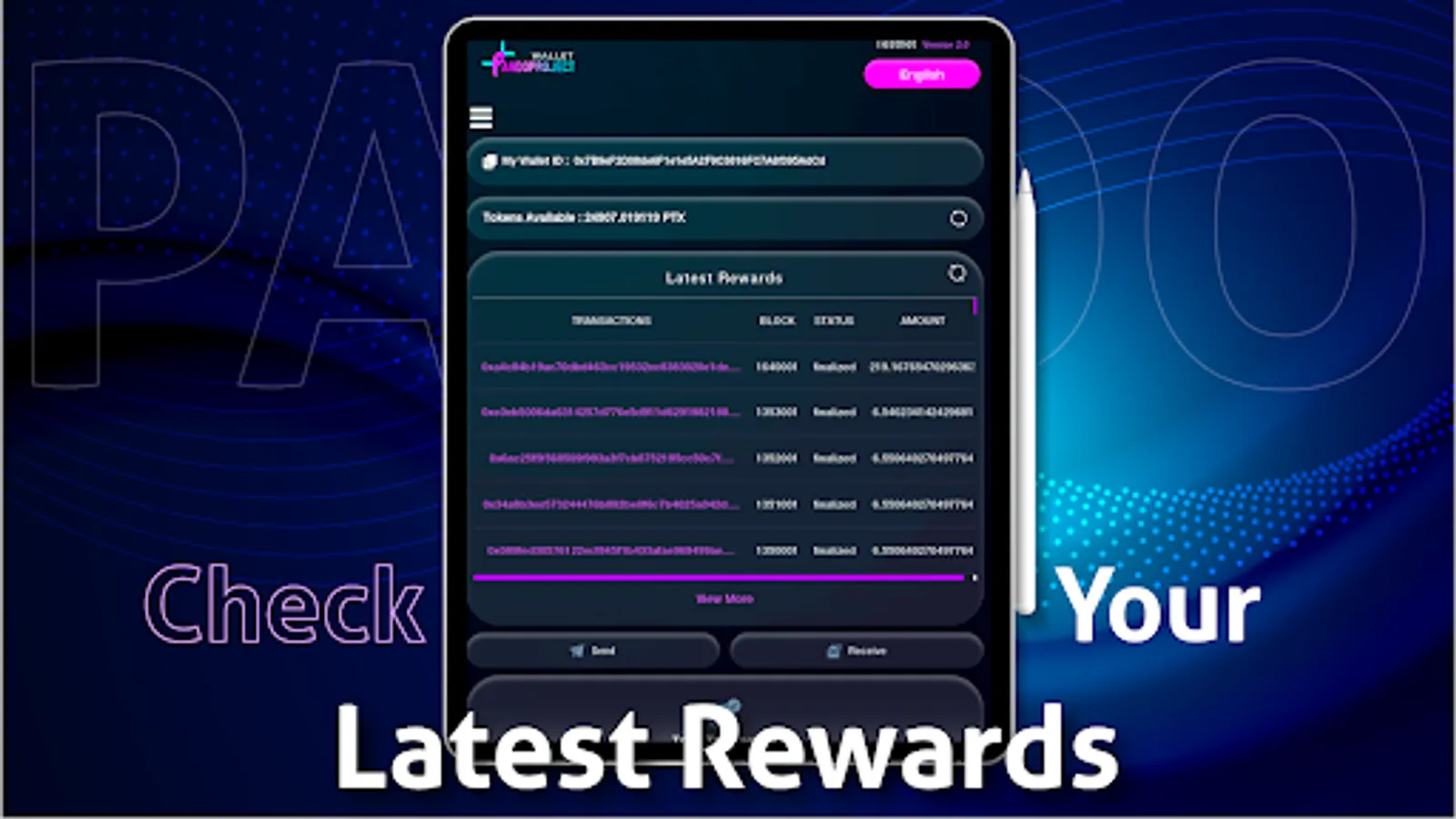 Pando Wallet is PTX token native wallet. You can hold, send and receive PTX with Pando Wallet. The mobile wallet makes it easy to use from your mobile devices and keeps your assets secure. You can now stake on all kinds of rametrons and perform all kinds of transactions in one click