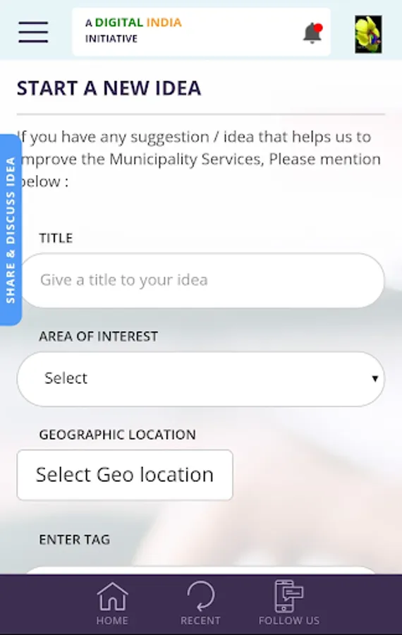 Have an idea to share to help build Pune city better? Share idea, let the people know, and talk about, visit ideas posted by others, comment and share them across channels.