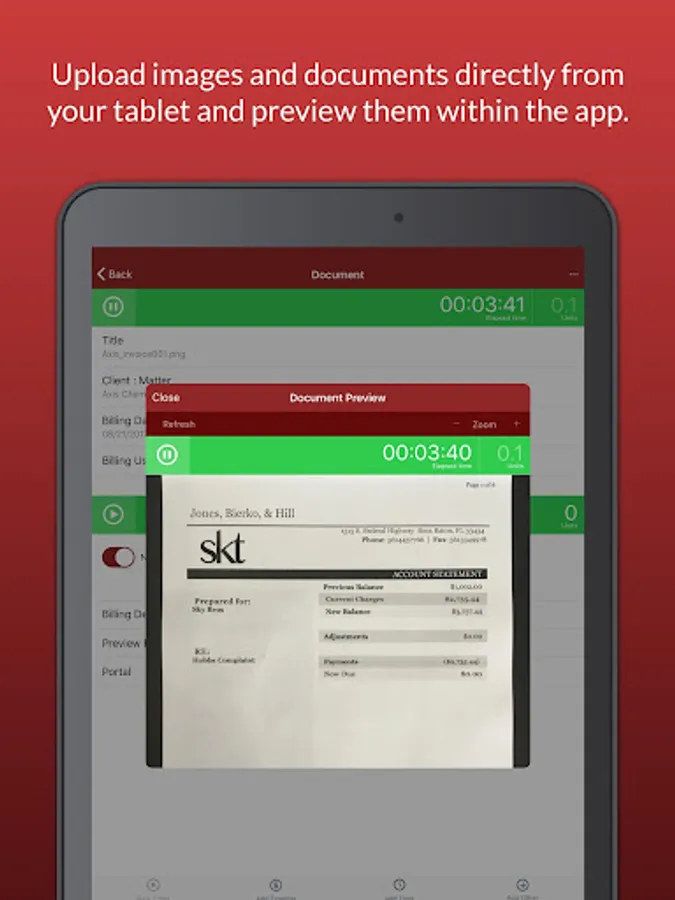 - Upload documents or pictures to matters and preview any document in your Rocket Matter account.