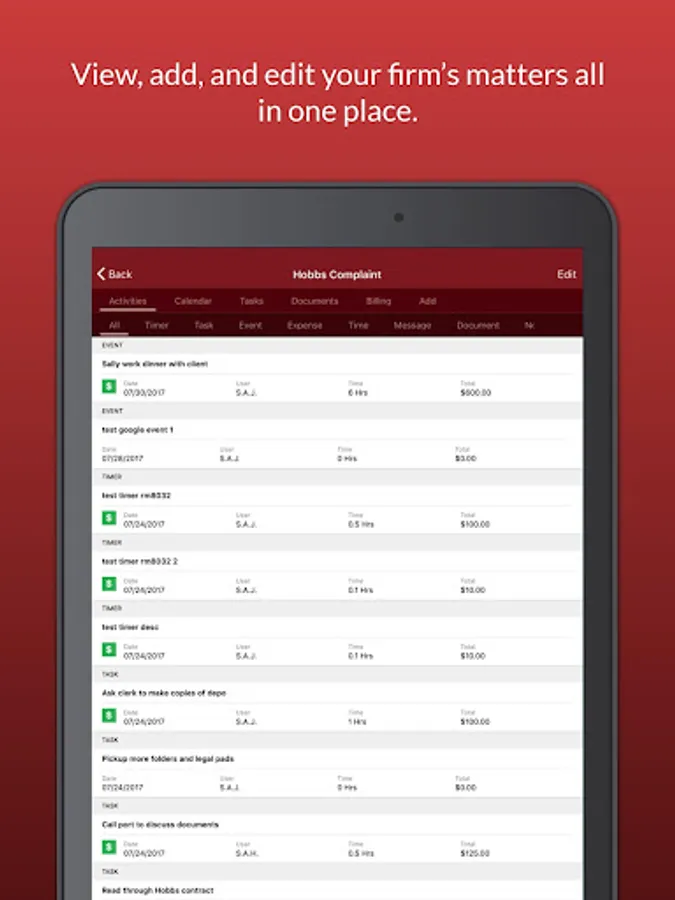 - Add, edit, and view contacts, matters, calendar events, and tasks, anytime from anywhere.