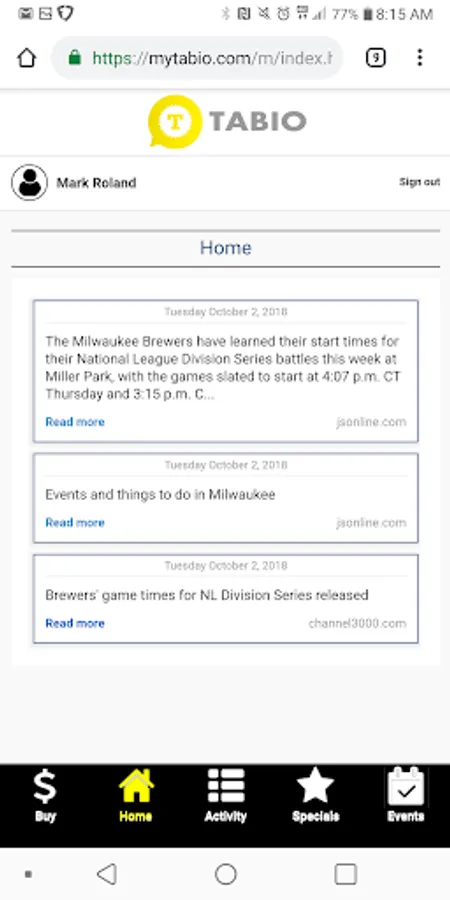 Hey Wisconsinites, Tabio will let you buy a friend a drink or bar tab, order food from your favorite restaurant and bar, read some local news, check out and purchase events from local establishments and keep you up to date on happy hour and specials in the area.