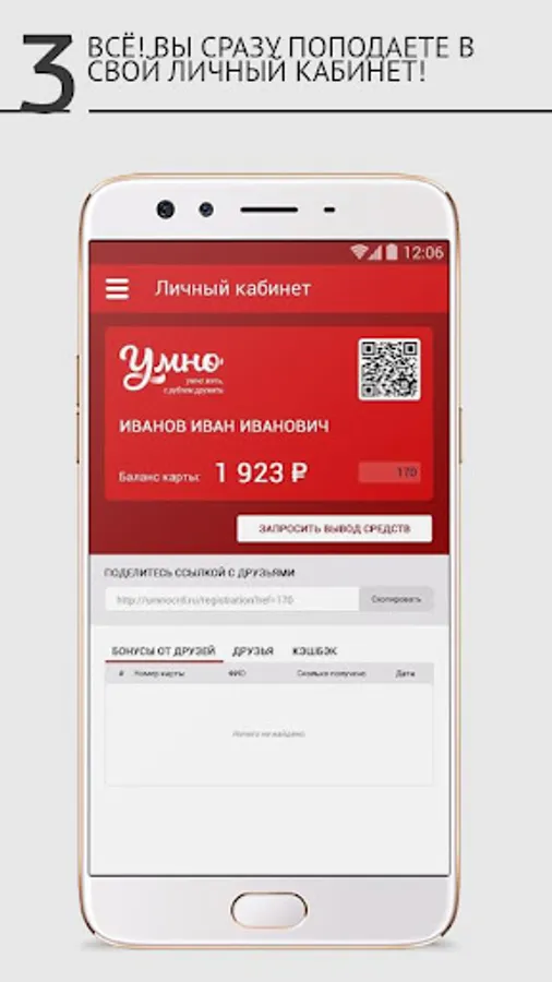 The more friends, the more money. The balance displayed in the application. Cash money easily. This is more than the discount - it's real income.