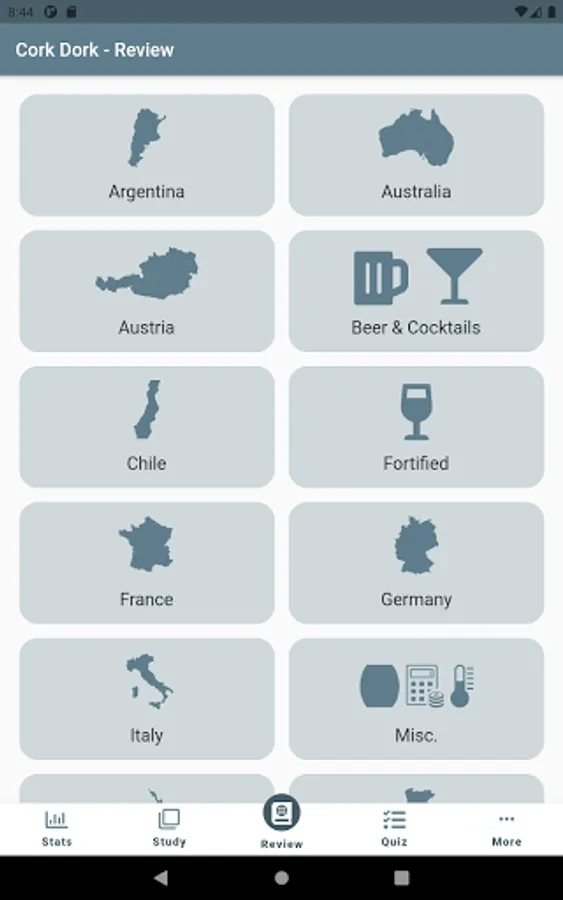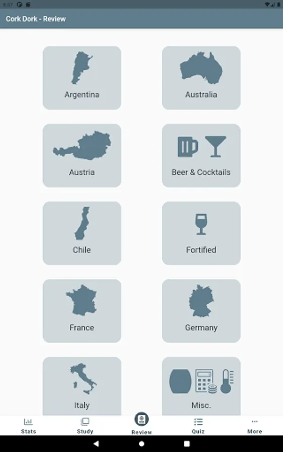Cork Dork Wine Study free users can study Argentina, Austria, Fortified, Italy, Portugal and Spain. Upgrade to Cork Dork Wine Study Pro to study all categories.