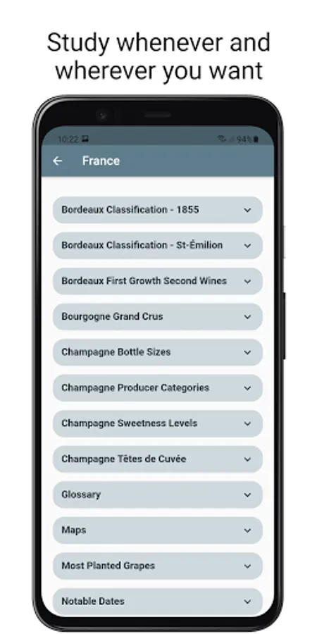Take your wine study and exam prep to the next level with up-to-date study material for all major Old & New World wine regions. You can also study Beer, Cocktails, Sake & Spirits. Ideal wine study aid for the following exams: WSET2, WSET3, CMS Intro, CMS Certified.