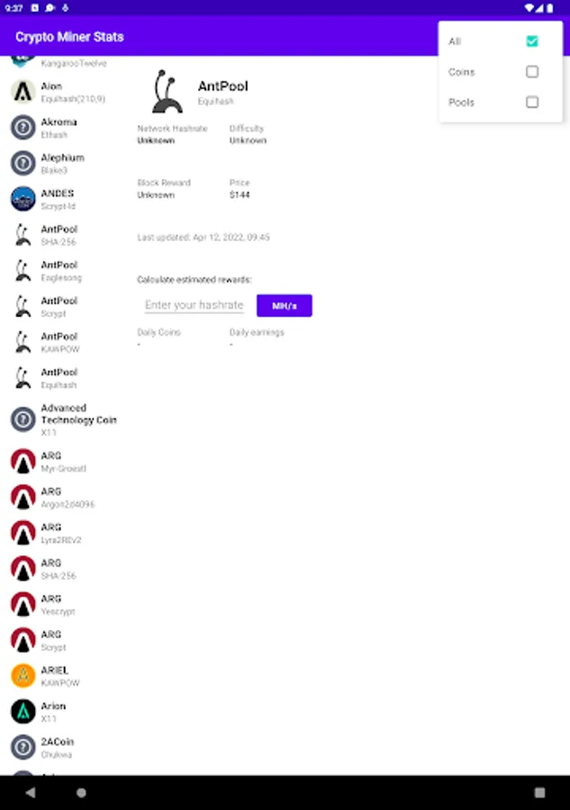 Crypto Miner Stats makes it easier to track mining hashrate across different pools/coins.