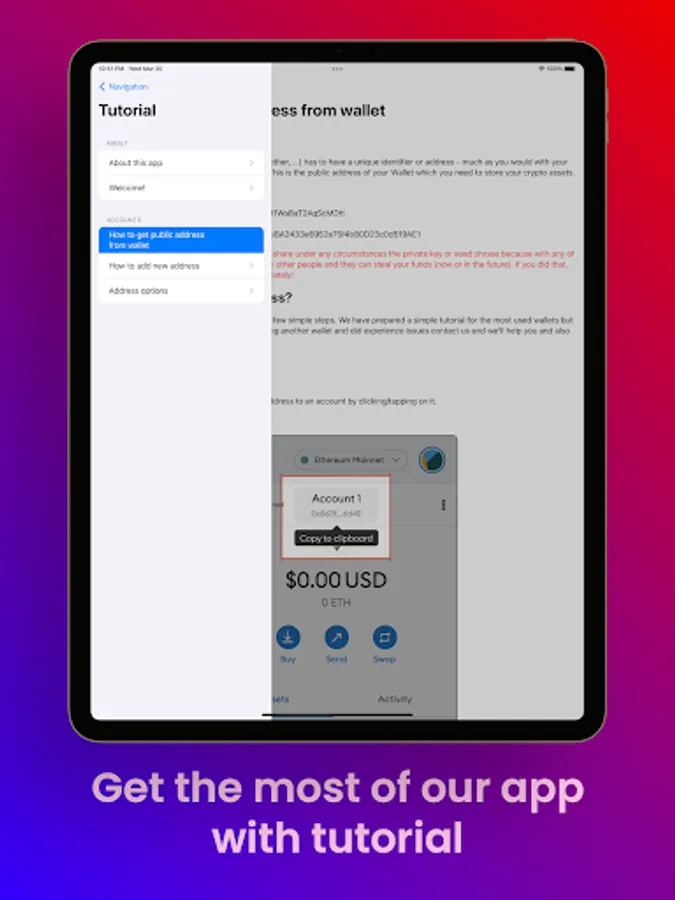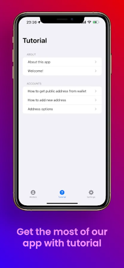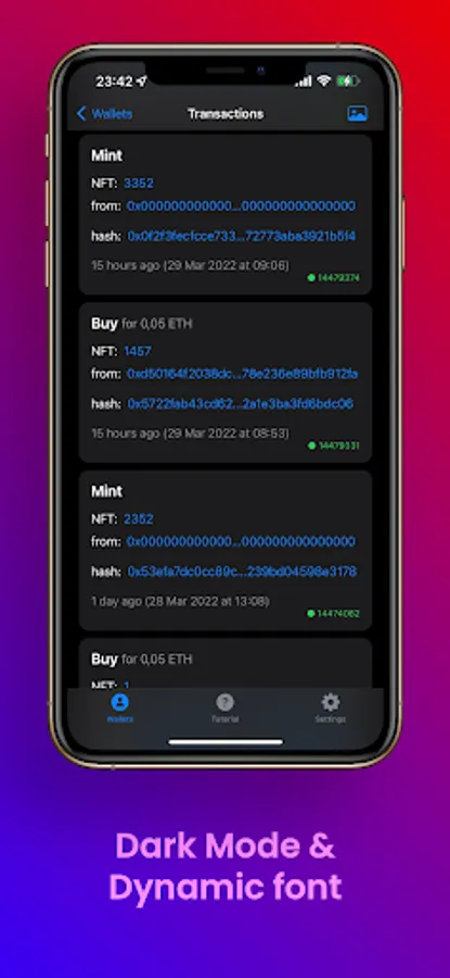 - View transactions of any address without leaving the app and also add them to the saved account lists if you want;