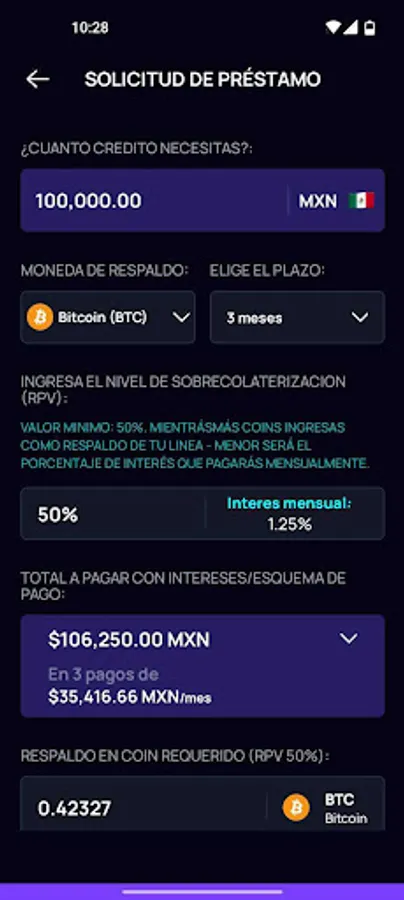 💵 Request a line of credit in Mexican pesos with a rate of 0% during the 45-day period, leaving one of the following cryptocurrencies as backup (Bitcoin BTC, Ethereum ETH, Solana SOL, Cardano ADA, Polkadot DOT );